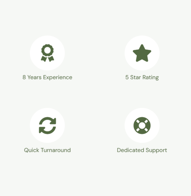 The badges illustrate this. We also focus on key benefits they will get while using our services, namely quick turnaround times and dedicated support. You could also use them to show awards you won for your best work.
